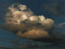 写実の風景画に焦点を当てたという同企画展。森本草介の「みちのく早春」は、作家の母の故郷岩手を描いている。小尾修の「咆哮(ほうこう)」は、台風で倒れた樹木に感じた恐ろしさと美しさをそのまま残そうとして描かれたとされる。羽田裕の「黎明富士」や五味文彦の「晩夏」など国内外の風景を捉えた作品も並ぶ。