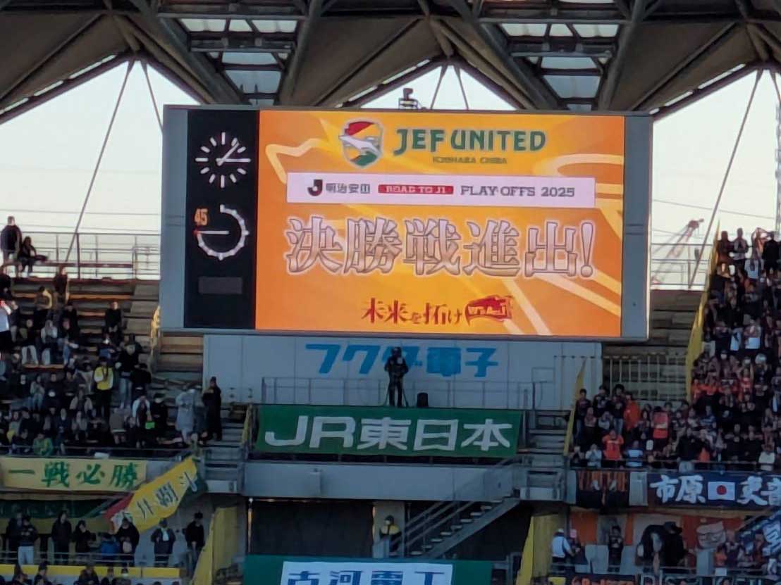サッカーJ2「ジェフユナイテッド市原・千葉(以下、ジェフ千葉)」は12月7日、フクダ電子アリーナ(千葉市中央区川崎町1)で行われたJ1昇格プレーオフ準決勝、RB大宮アルディージャに4-3で勝利した。