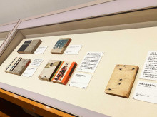 ケースに並ぶ装丁した書籍