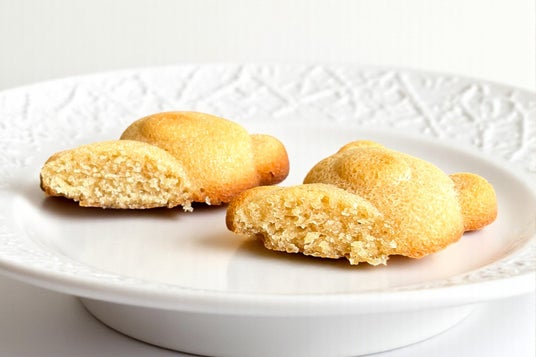 表面はきつね色から黄金色に均一に焼き上がり、周囲がほんのり濃い茶色に染まっているのは、香ばしさの証。光に当てるとほんのり光沢を放つマットすぎないツヤがあり、丁寧に焼き上げられたフィナンシェならではの上品な輝きを見せています。