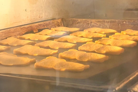 生地が詰まった型は、予熱されたオーブンの中へ。