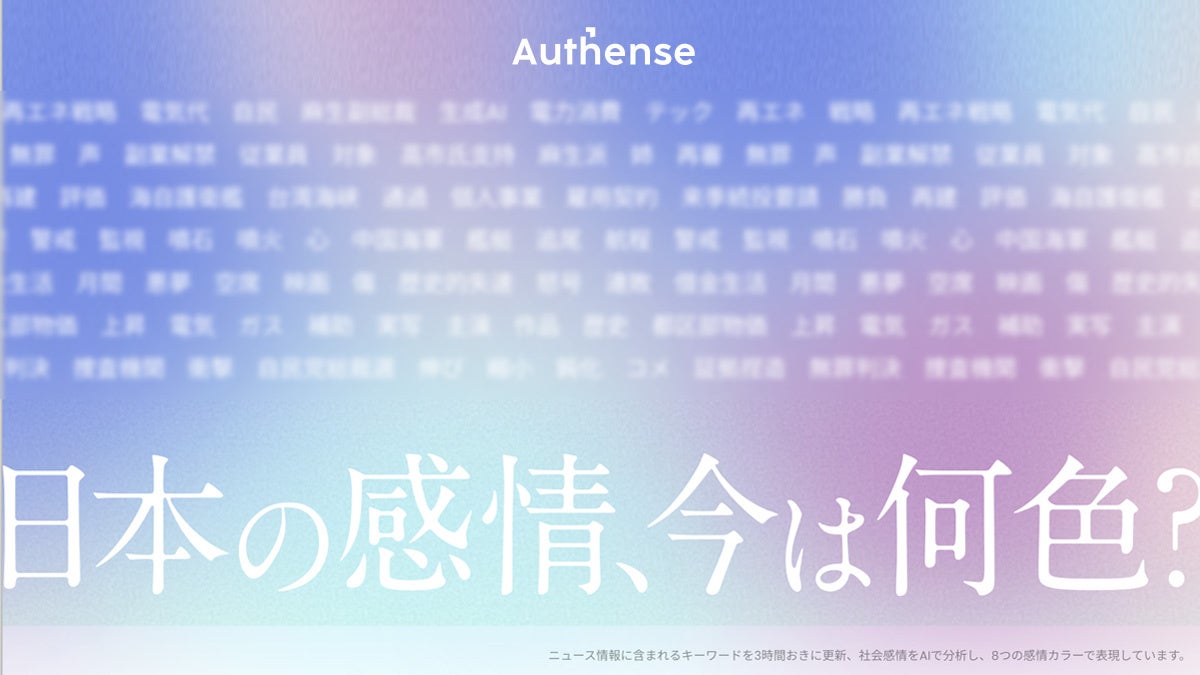 Authense法律事務所は、感情に敏感でありたいという思いから、”今”世の中が興味を抱いているニュース、社会感情についてAIで分析し、3時間おきにWEBサイトを更新しています。あなたの感情は、今は何色ですか?