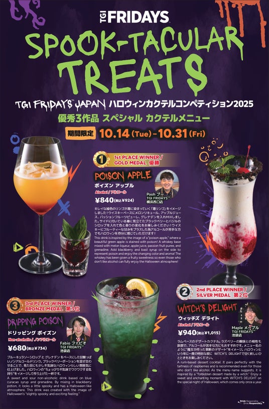 TGI FRIDAYS JAPAN ハロウィンカクテルコンペティション2025 優秀3作品