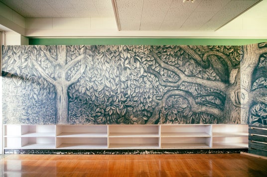 (佐藤直樹:そこで生えている。旧石出小学校内で保管・展示している様子)
