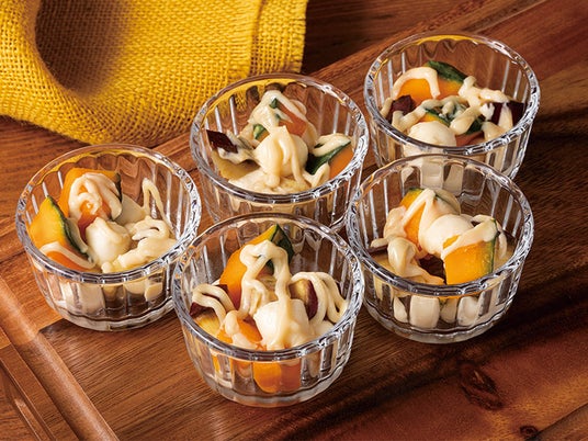 モッツァレラチーズと薩摩芋・南瓜のカプレーゼ風 西京味噌風味