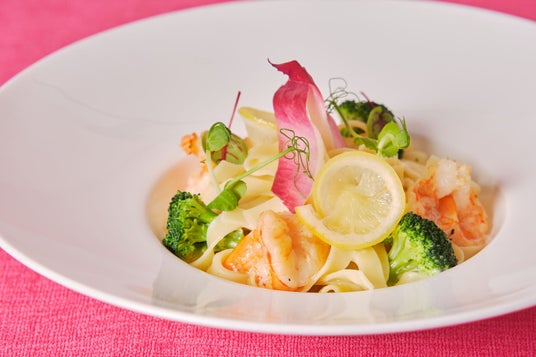 蕪のポタージュ/海老とレモンクリームのタリアテッレ