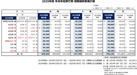 成田国際空港株式会社はこの度、年末年始期間中に成田空港をご利用になる旅客数の推計を取りまとめましたので、お知らせいたします。