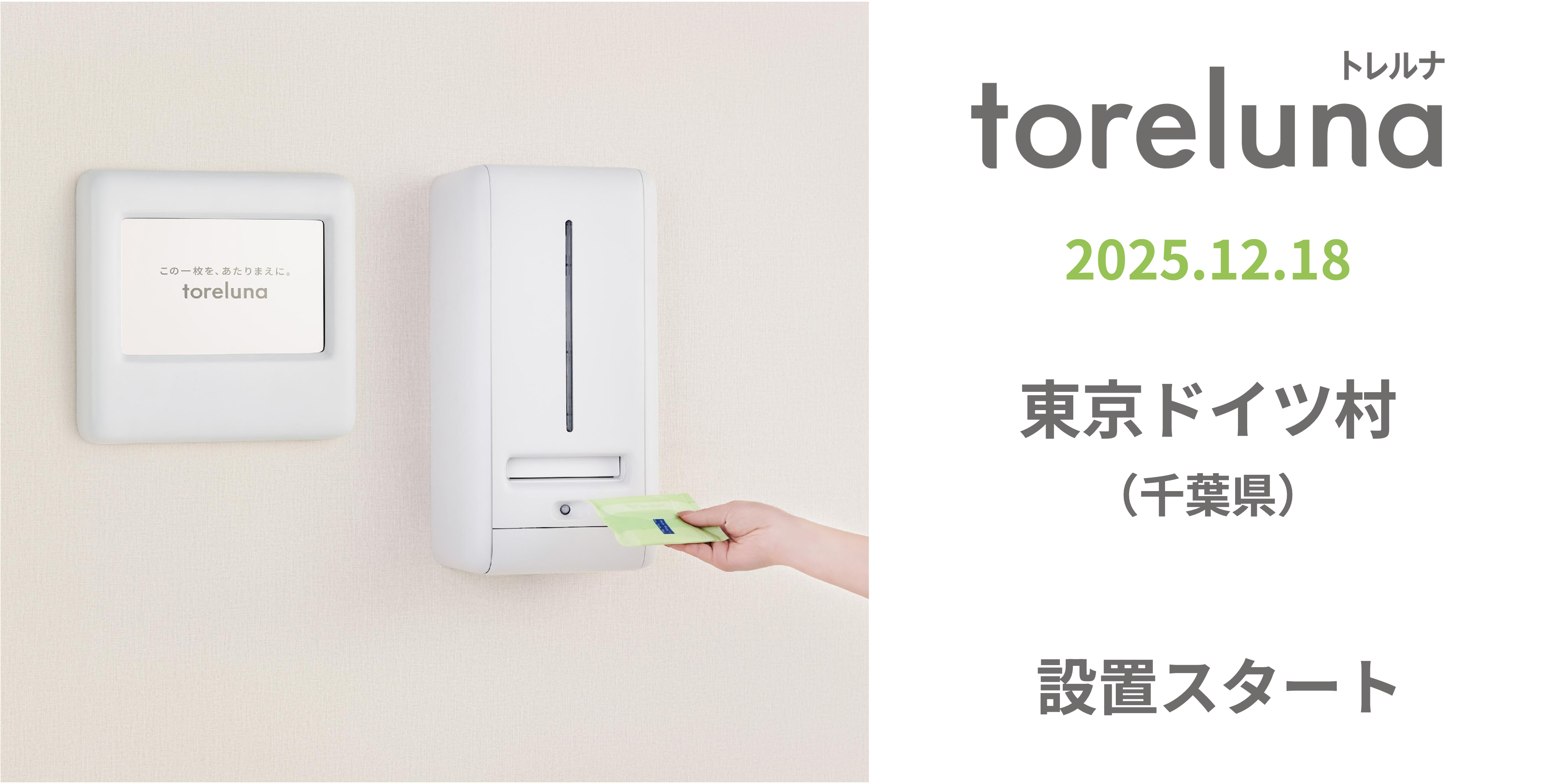 株式会社ネクイノ(大阪市北区、代表:石井 健一)は、トイレの個室で生理用ナプキンを常備し無料で提供するサービス「toreluna(トレルナ)」(以下 トレルナ)を、東京ドイツ村へ設置し、サービスの提供を開始いたします。