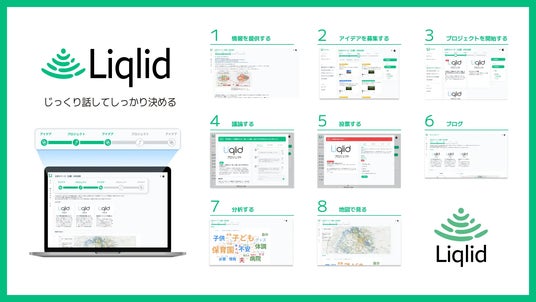 オンラインの市民参加型合意形成プラットフォーム「Liqlid」は、Liquitousが独自に開発した、『じっくり話して、しっかり決める』をコンセプトとする、対話・熟議に基づく参加型合意形成プラットフォームです。