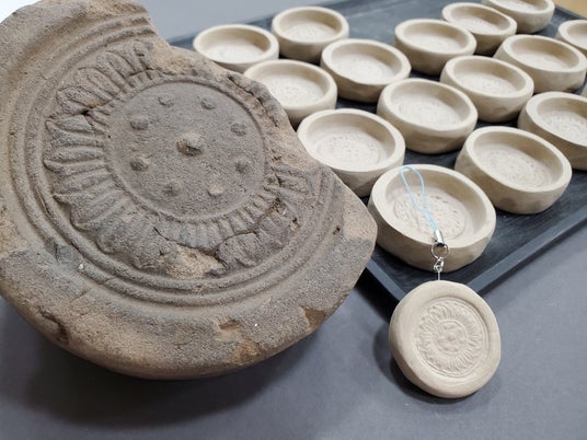 上総国分寺跡出土軒丸瓦とオリジナルストラップ